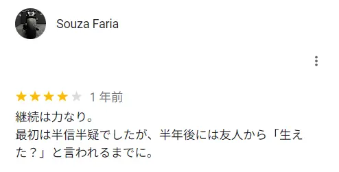 「3ヶ月でだいぶマシになってきた」という方による口コミです。