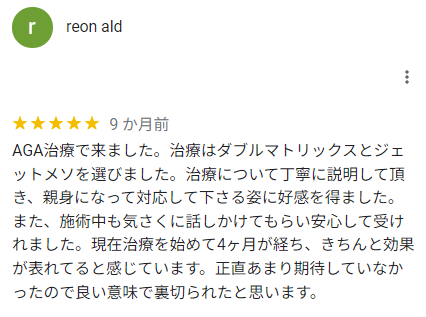 湘南AGAクリニック福岡院の良い評判・口コミは、次のとおりです。